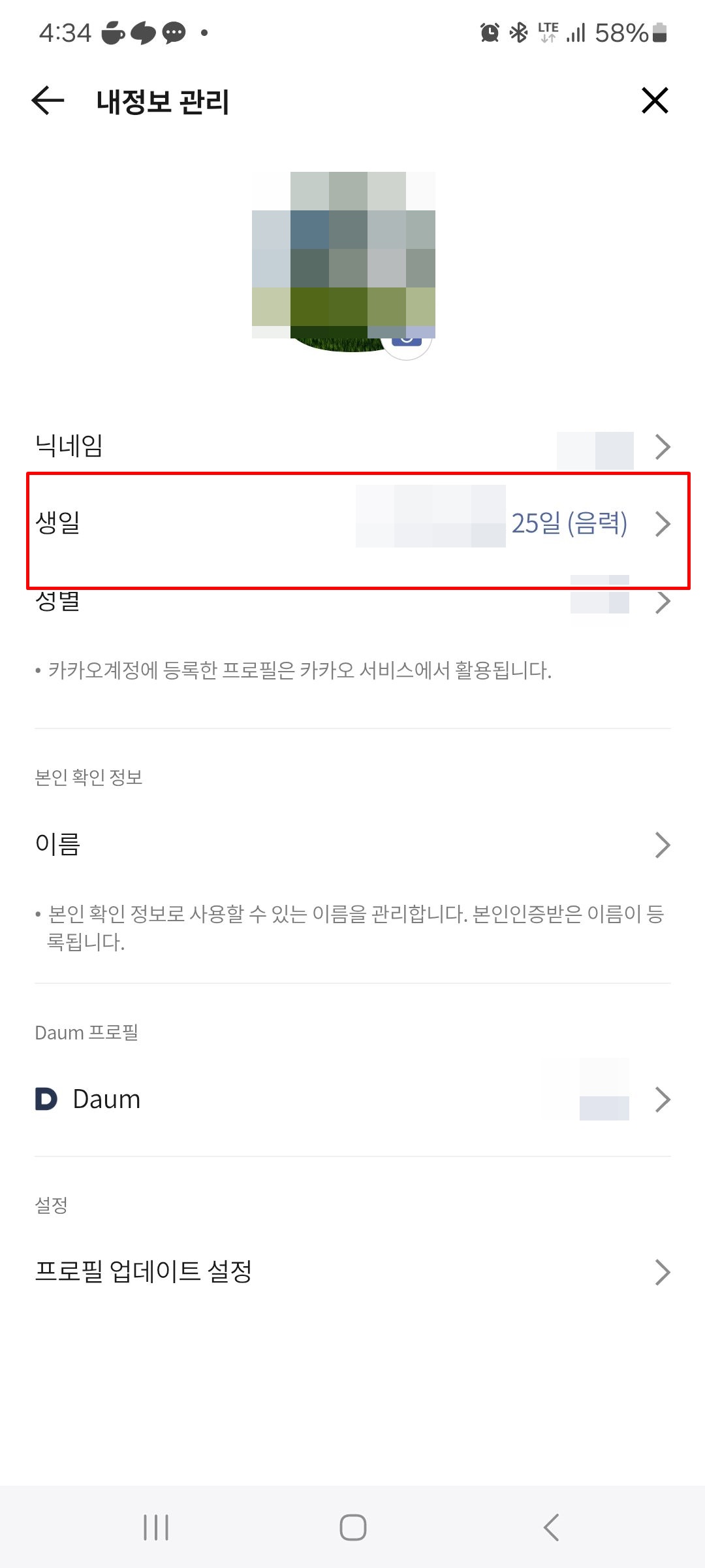생일 변경은 카카오계정에서만 가능하다는 점! 프로필에서 바꾸는 건 의미 없어요. 그리고 생일을 바꾸고 바로 반영이 안 될 수도 있으니, 하루 정도 기다려보시는 게 좋아요.