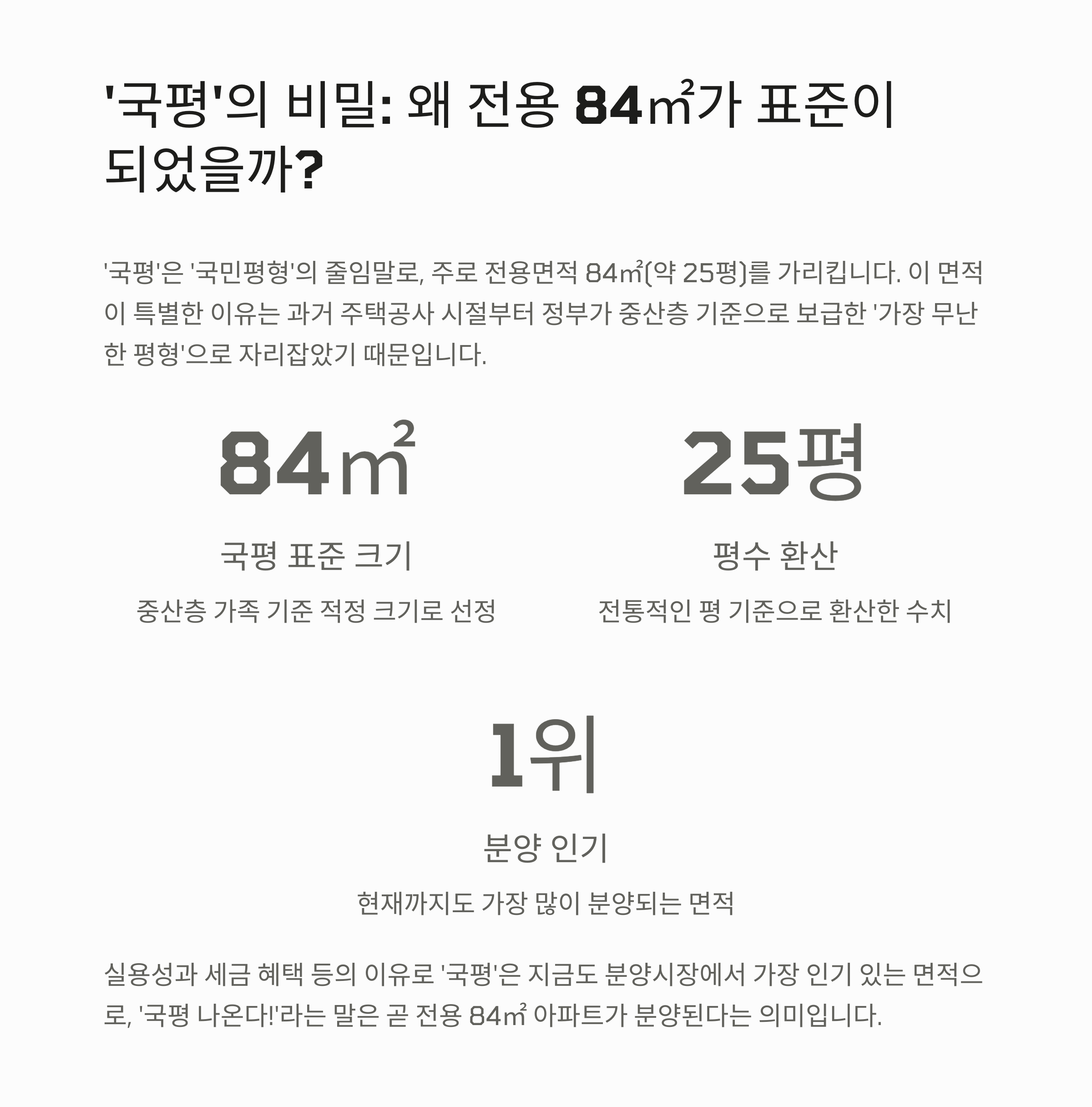 그래서 '국평 나온다!'는 말은 곧 84㎡ 타입 아파트가 분양된다는 뜻이기도 하죠.