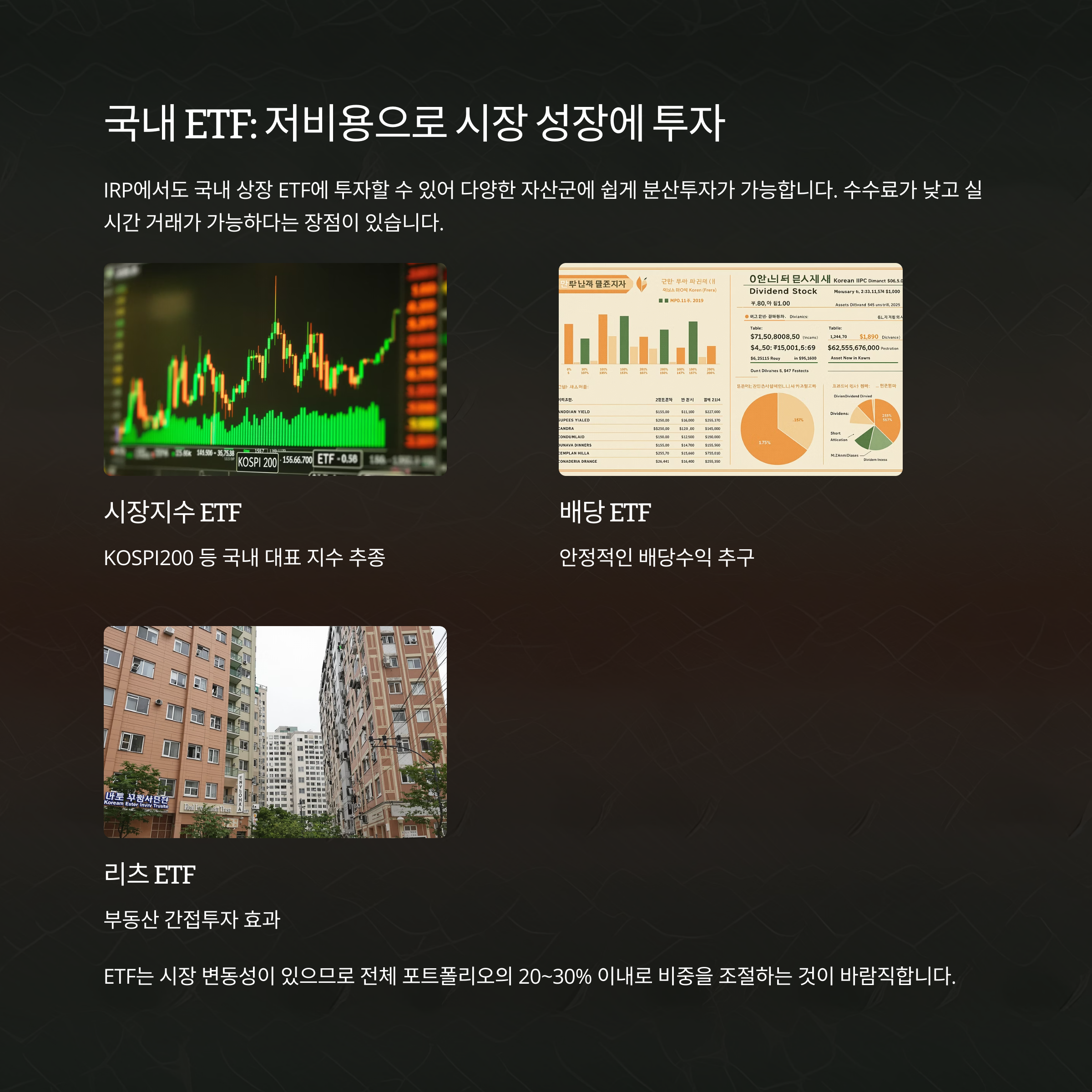 예금과 펀드, ETF 등 자산별 특징과 적정 비율을 이해하고 구성하면 IRP를 통해 연금 이상의 자산 성장이 가능합니다.