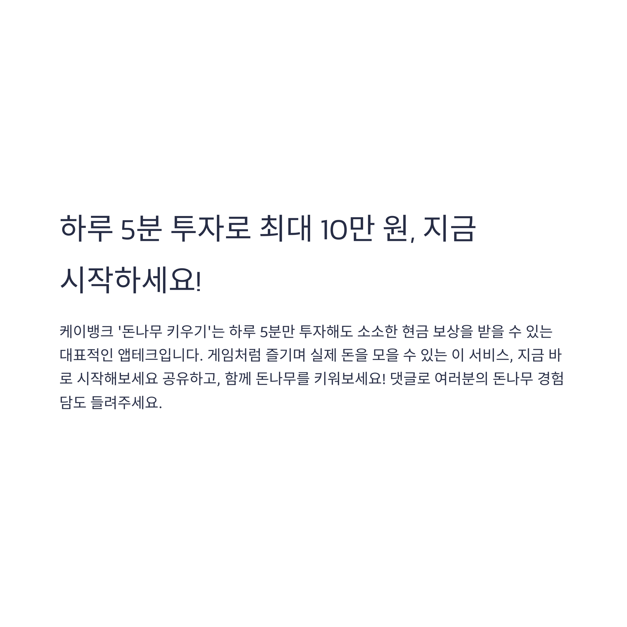 매일 5분 투자로 최대 10만 원 받는 앱테크 케이뱅크 돈나무 비밀