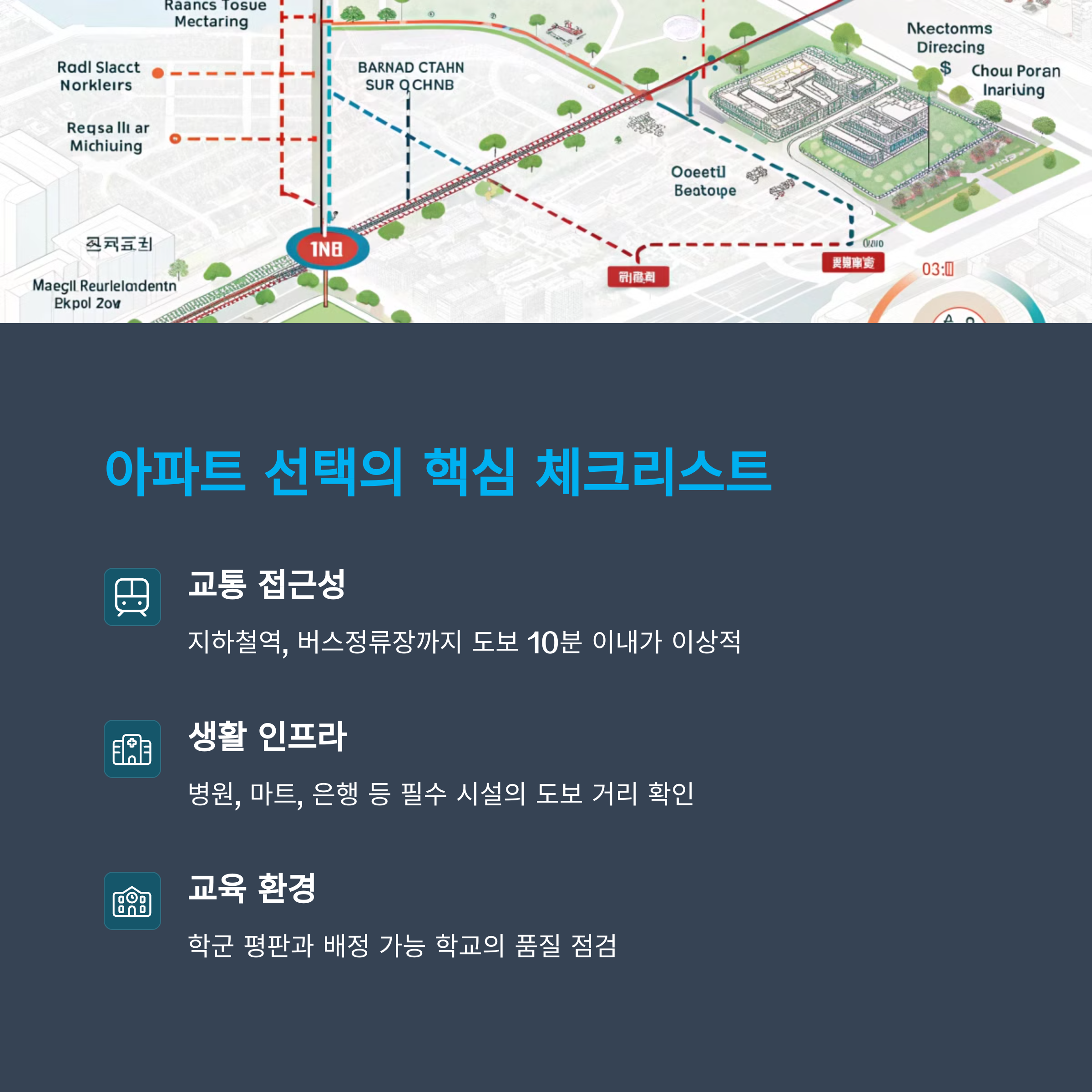 이번 글에서는 실거주자와 투자자 모두가 반드시 체크해야 할 아파트 입지 체크리스트 10가지를 소개합니다.