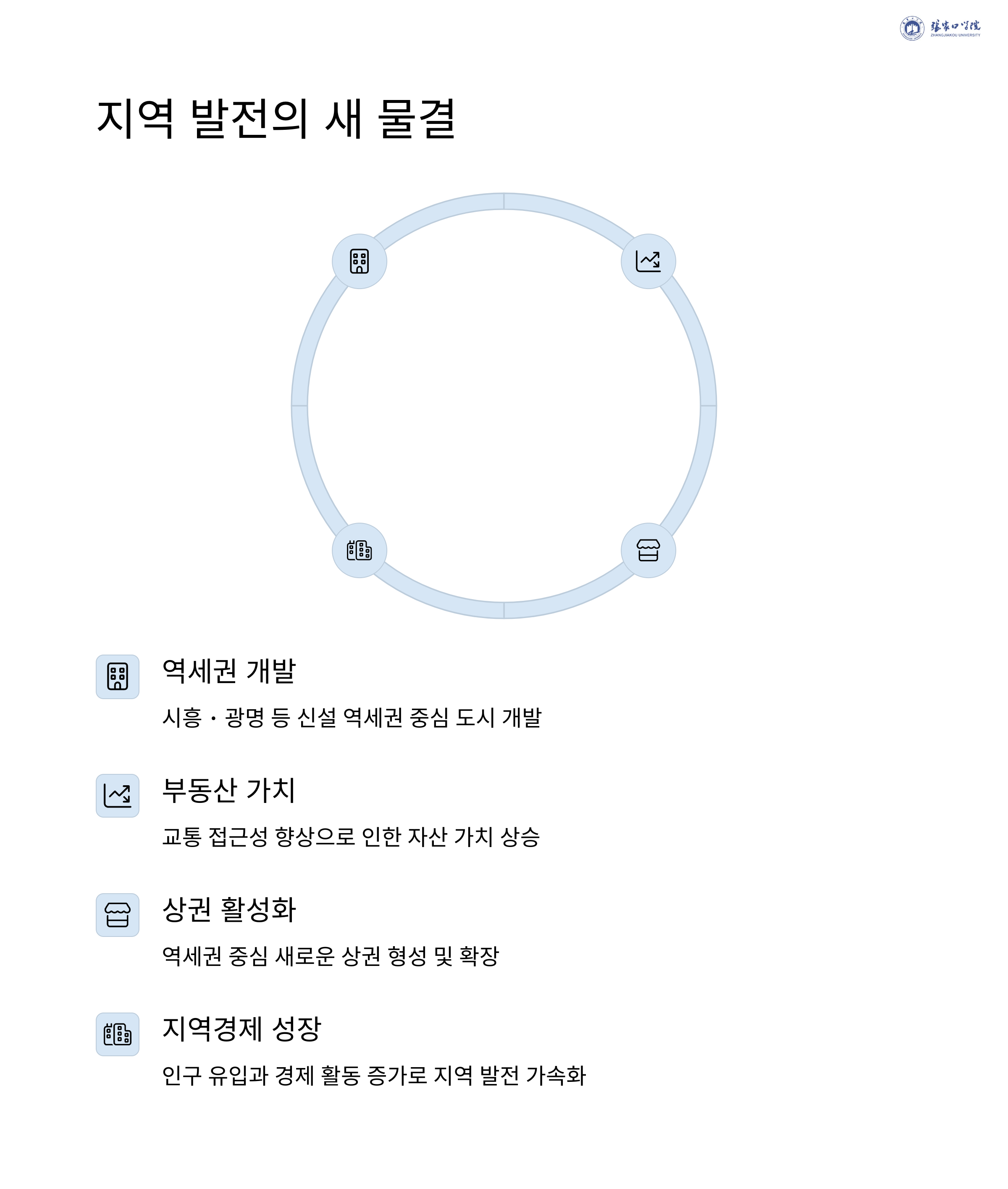 신안산선의 핵심은 단순한 교통 편의 향상이 아닙니다. 노선이 지나가는 도심과 주거지역은 개발 가능성도 높고 주택 수요, 상권 활성화에 큰 영향을 미칠 것으로 기대돼요.