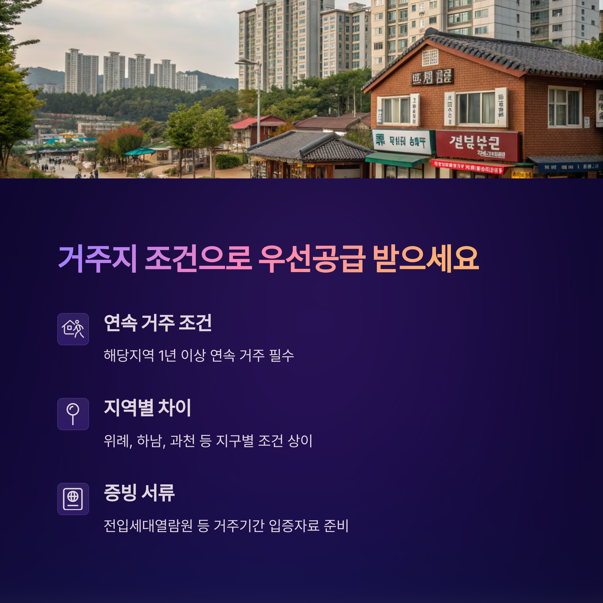 거주지 조건 - 1년 이상 거주 시 우선공급 혜택