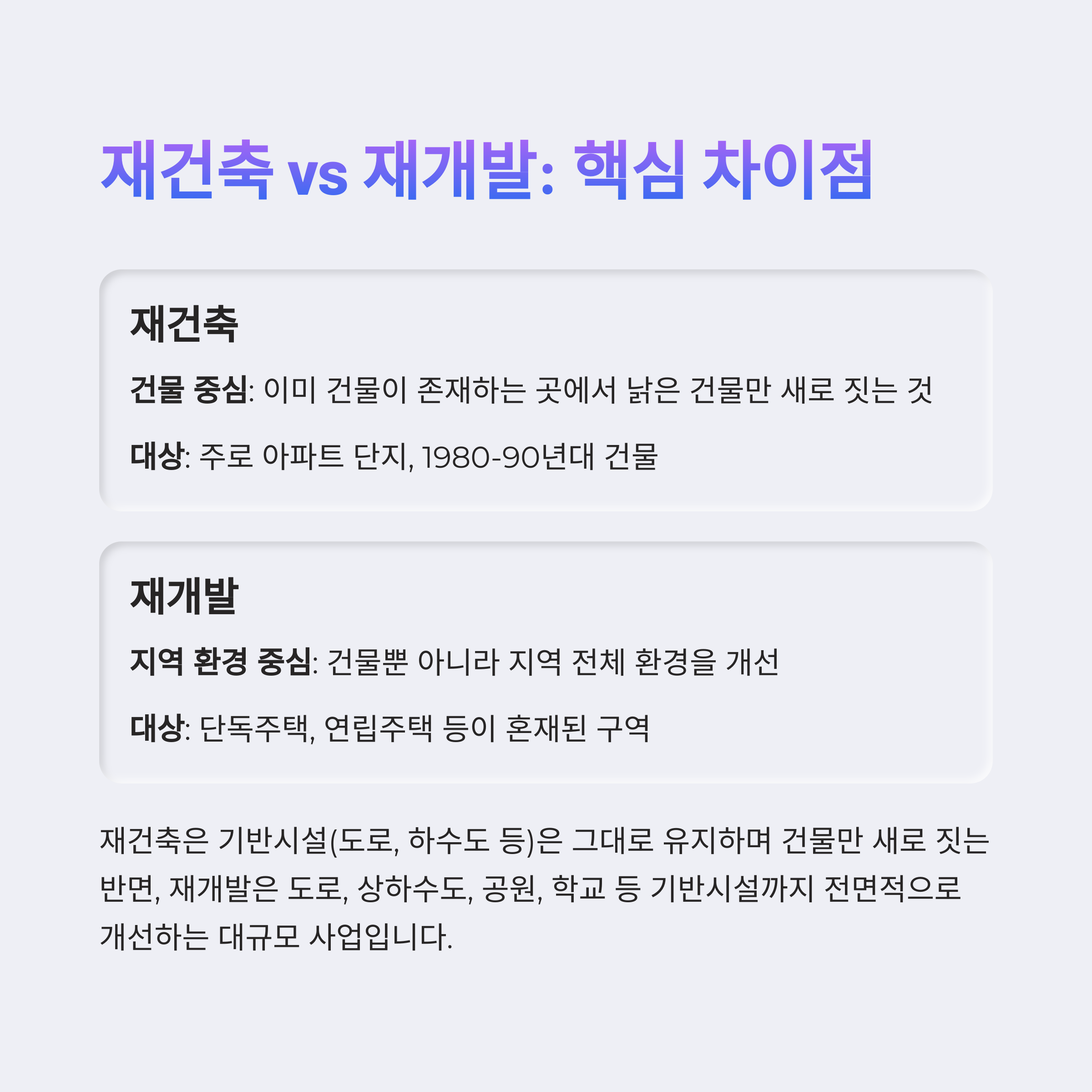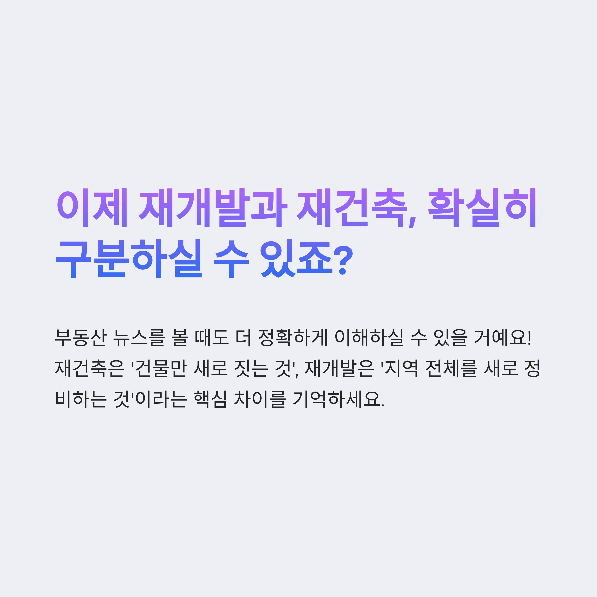 이제 재개발과 재건축의 차이점, 확실히 정리되셨죠?