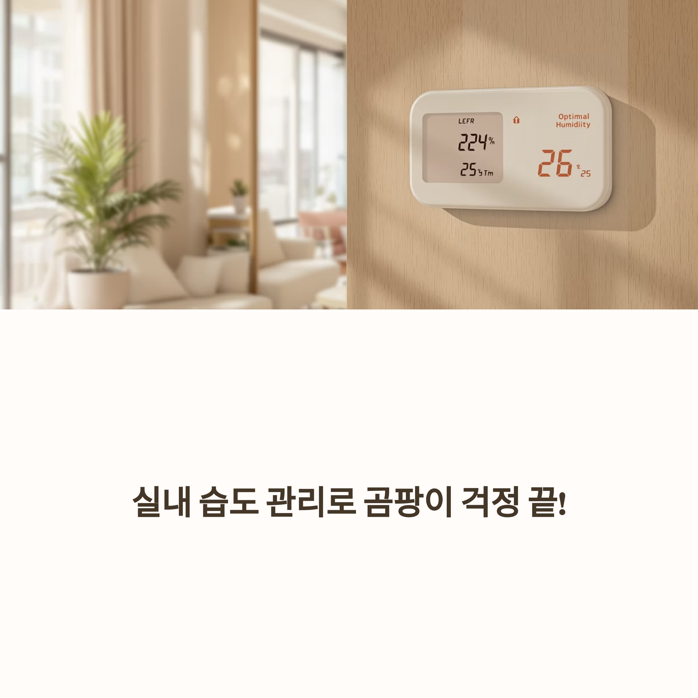 대한민국 기후에 맞춰 환경부는 쾌적한 실내 적정 습도를 40~60%에서 45~55%로 더 좁게 제안하고 있습니다. 특히 곰팡이 번식은 60% 이상, 3일 이상 지속될 때 활발하게 발생합니다. 따라서 실시간 측정 가능한 디지털 습도계를 사용해 습도 변화를 수시로 확인하는 것이 기본입니다.