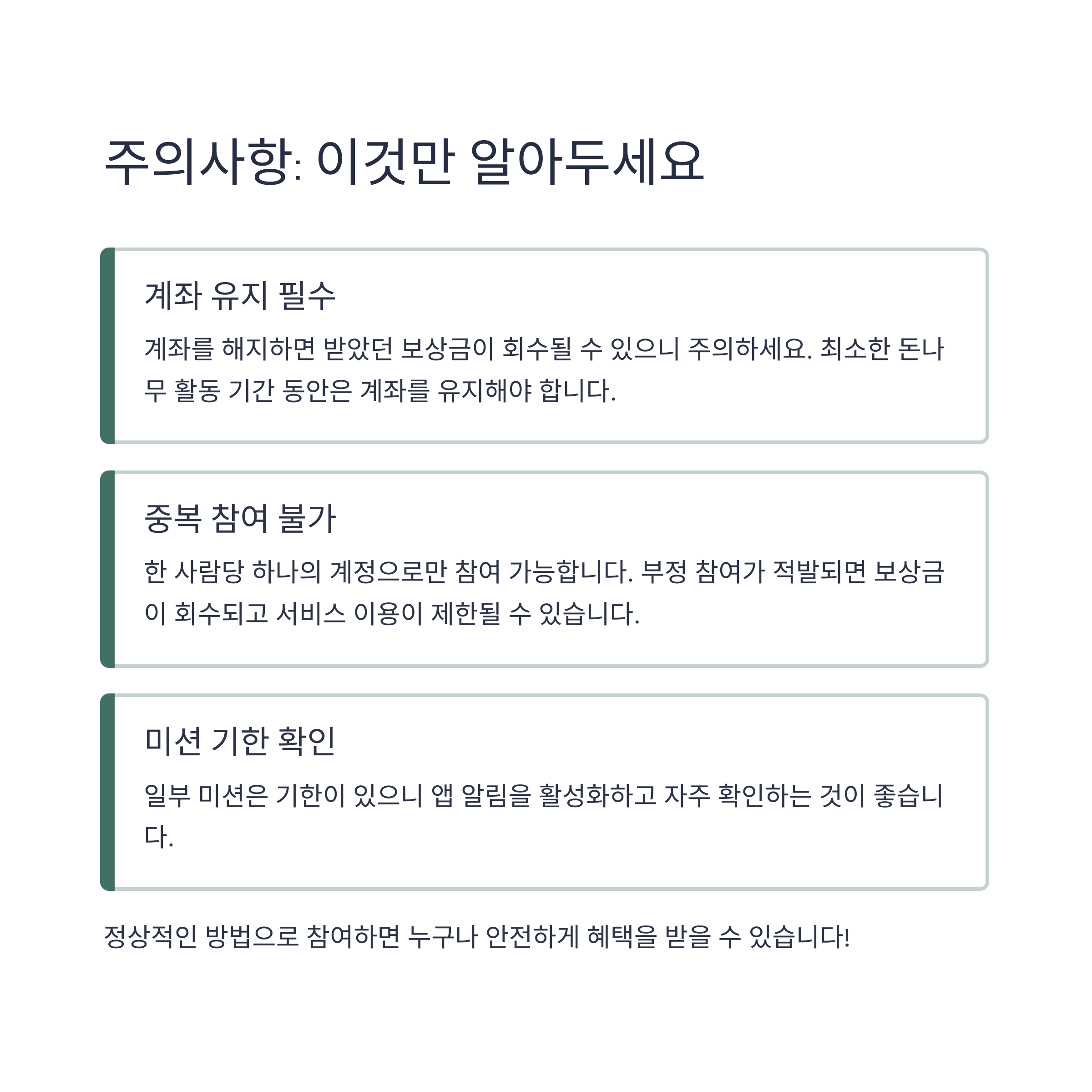| 주의사항 | 부정참여·계좌 해지 시 보상 회수 |
