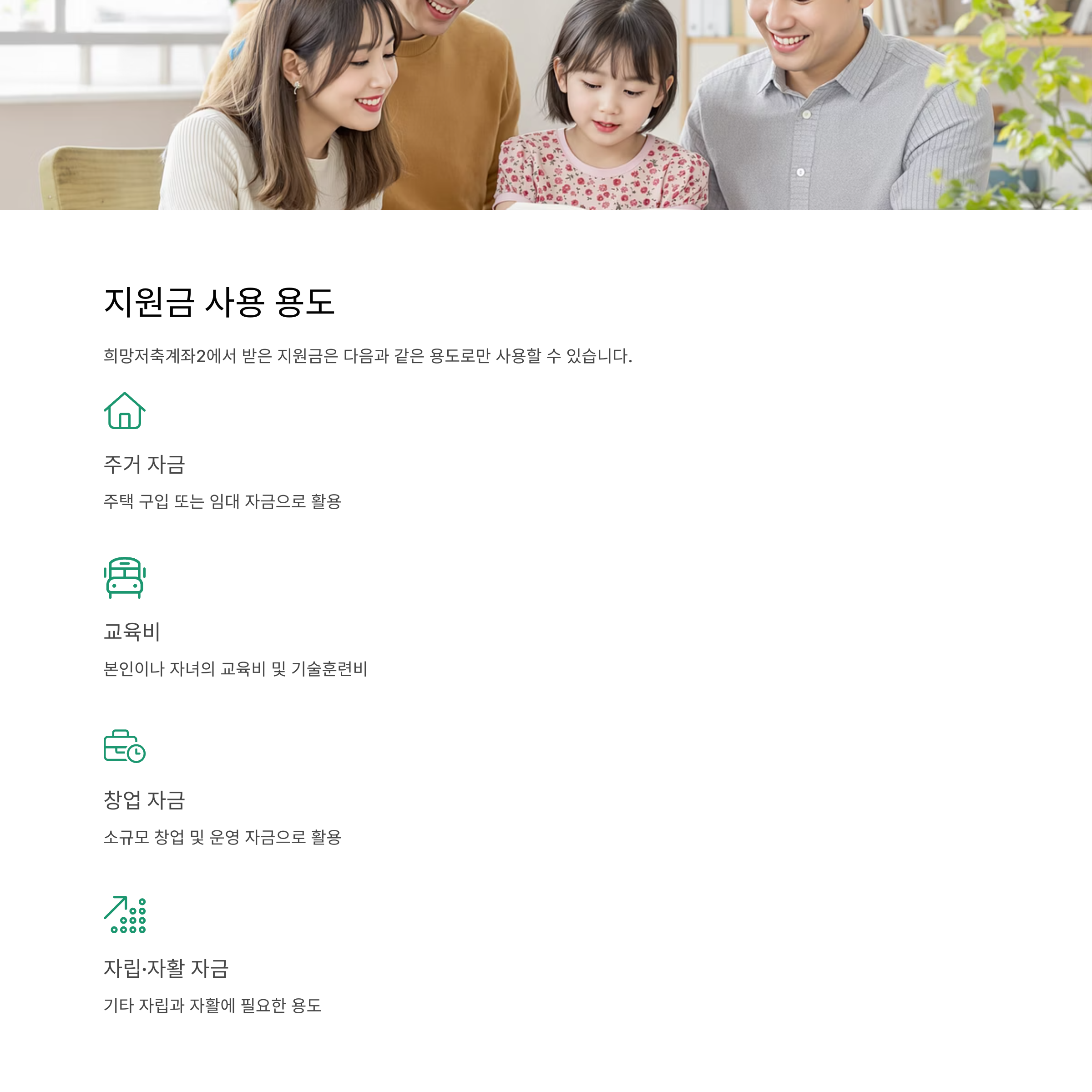 | 본인저축 | 매월 10만~50만 원 선택 저축 |